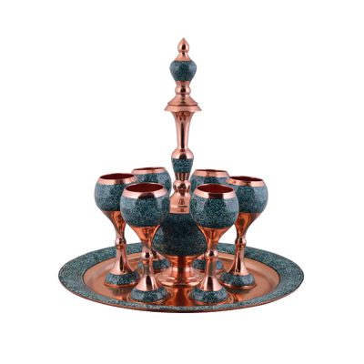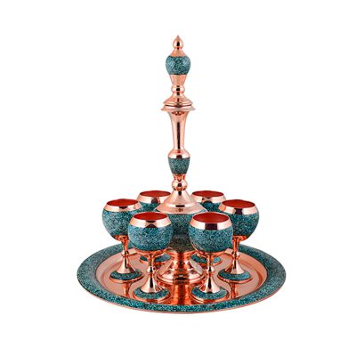 سرویس شربت خوری 8 پارچه بزرگ فیروزه کوبی کد F108