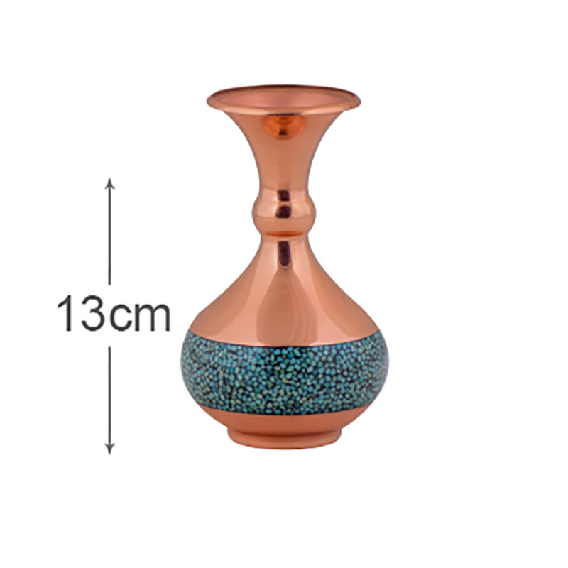گلدان شلغمی 13 فیروزه کوب یکی از خلاقانه ترین تولیدات فیروزه کوبی مظفری است. این محصول با آن ظاهر کوچک و ظریفی که دارد، زیر دست های هنرمندان و اساتید کشور ساخته شده است. در تولید این گلدان از مس مرغوب و سنگ های فیروزه اصالت دار نیشابور استفاده شده است. کاربرد: ما از یک گلدان برای قرار دادن شاخه های گل استفاده می کنیم. با این تعریف می توان گفت گلدان شلغمی 13 فیروزه کوب نیز این قاعده خارج نیست. به ویژه برای مناسبت ها و مهمانی های، گلدان شلغمی و گل های داخلش می توانند احساسات مثبت را در محیط پخش کنند. برای تزئین دکوارسیون منزل با محل کار نیز این محصول انتخابی عالی است. دلیل این موضوع را می توان ظاهر پر زرق و برق و ظرافت بی انتهای گلدان شلغمی مرتبط دانست. سطح براق و استفاده از سنگ های فیروزه خوش آب و رنگ، به طراحی داخلی احساس زندگی می بخشد. برای خوشحال کردن افرادی که دوستشان داریم، گلدان شلغمی می تواند هدیه ای درخور توجه باشد. این گلدان مناسب روزها و مناسبت های مختلف اعم از روز تولد، روز مادر یا حتی کادوی عروسی است. همچنین، از این محصول می توان برای هدایای سازمانی استفاده کرد.