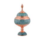 کلات خوری متوسط فیروزه کوبی برای کسانی که قصد خرید صنایع دستی امضا دار را دارند؛ یکی از محصولات فیروزه کوبی منحصر به فرد است. تمامیه محصولات فیروزه کوبی دارای امضا استاد مظفری است، فیروزه کوبها اصالت سنگ فیروزه نیشابور دارد که به همراه شناسنامه ارائه میشود. ارتفاع این شکلات خوری متوسط فیروزه کوب 25 سانتی متر است که بدنه مسی آن تماما از فلز مس خالص و درجه یک تهیه شده است.