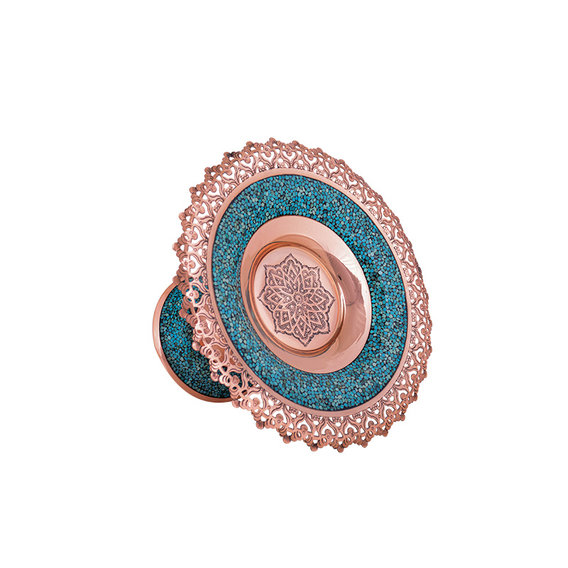 فیروزه کوبی نوعی از صنایع دستی است که با نشاندن قطعههای کوچک سنگ فیروزه به حالت موزاییکی بر سطح ظروف، زیورآلات و اشیای تزئینی (از پایههایی به جنسهای مسی، برنجی و …) ساخته میشود و بین قطعههای فیروزه نوعی چسب تیره رنگ دو مواده (آراکس) قرار میگیرد. این هنر حدود ۶۰ یا ۷۰ سال پیش در مشهد به دست یوسف حکمیان (معروف به محمدرضا) انجام شد و ۲۰ سال پس از آن توسط حاج داداش به اصفهان آورده شد.